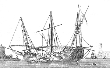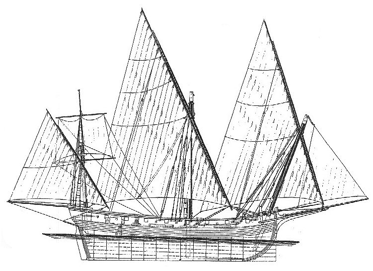 Type de navire assez mal connu, mais qui a beaucoup été utilisé en Méditerranée au XVIIIe siècle. C'était un navire de type tartane, de fort tonnage (200 à 300 tonneaux), dérivé du chébec turc pour la partie avant, notamment avec son mât de misaine incliné, et de la frégate pour la partie arrière. La pinque portait trois mâts à pible (en une seule partie), bien que certaines sources fassent état de mâts à hunes. Elles étaient principalement gréées en chébec, avec des voiles latines, pouvant être substituées par des voiles carrées. Utilisées comme navires de charge, les pinques disparurent vers 1820. “Bâtiment marchand et a voiles latines. Sa carène est vaste ou a fond plat. Il est ordinairement a trois mâts, à antennes, et on en fait surtout usage sur la Méditerranée. Son port s'élève quelquefois jusqu'à deux ou trois cents tonneaux. Il est surtout distingué par sa poupe, qui est très élevée.” ( N.C. Romme, Dictionnaire de la Marine Française, 1792.) |