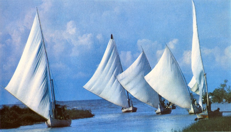 Prao est un mot malais-indonésien signifiant embarcation. C'est le nom générique donné aux bateaux de la côte malaise, gréés fréquemment de voiles à antennes. On désigne également sous le nom de prao une pirogue à balancier des Iles Carolines ; portant un mât avec une voile triangulaire à antennes, cette pirogue est particulièrement rapide aux allures portantes. On retrouve des praos dans toute la Micronésie, de différentes tailles et configurations. La construction des grands praos de voyage est en totale contradiction avec ce qui se pratique dans le reste du monde. Pour tous les navires, la proue diffère de la poupe, et les deux côtés sont identiques et symétriques. Le prao, au contraire, a sa proue et sa poupe identiques, mais ses côtés sont différents. Le bord sous le vent est plat tandis que le bord au vent est arrondi comme ceux des autres navires. La particularité du prao est de toujours naviguer en présentant le même côté au vent, et il change d'allure en naviguant en sens inverse, sa proue devenant alors sa poupe. |